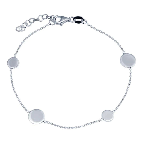 Sterling Silver 925 Adjustable Single Strand Rhodium Plated Bracelet with 4 Disc