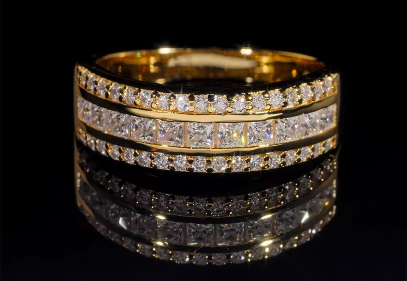 .925 Sterling Silver Gold Plated Princess Square Half Set Moissanite Rings