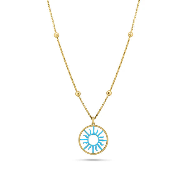 Gold Plated 925 Sterling Silver Turquoise Sun Charm Box Beaded Adjustable Necklace
