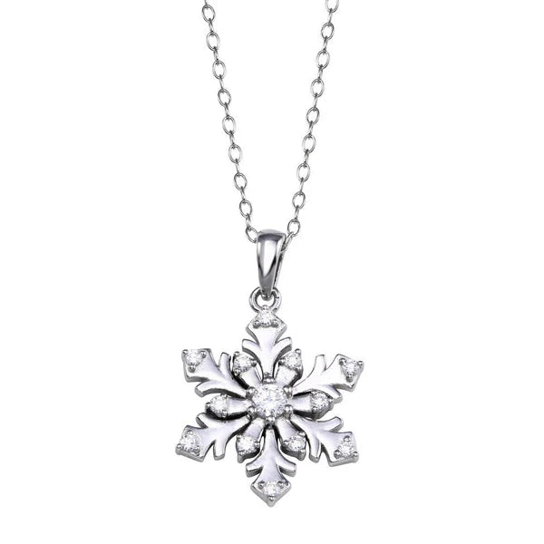 Rhodium Plated 925 Sterling Silver Snow Flakes CZ Necklace