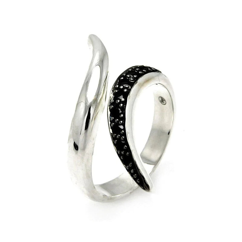 Silver 925 Rhodium and Black Rhodium Plated Black CZ Ring