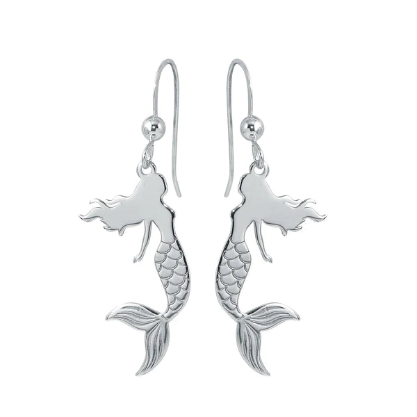 Silver 925 Rhodium Dangling Mermaid Earrings