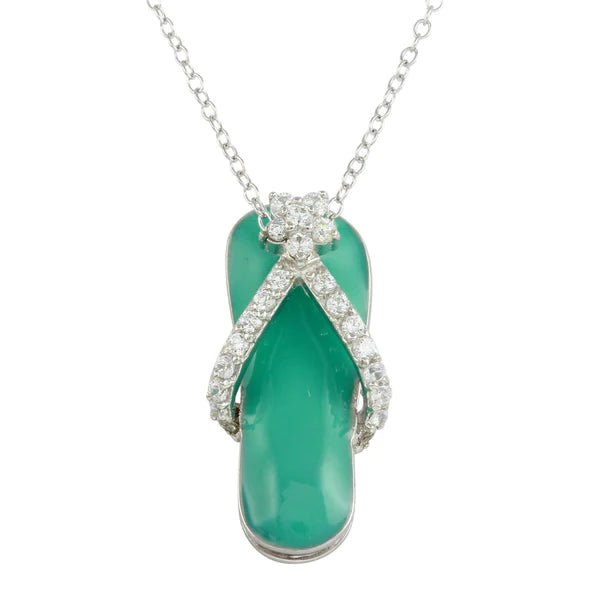 Silver 925 Rhodium Plated Blue Flip-Flop Necklace
