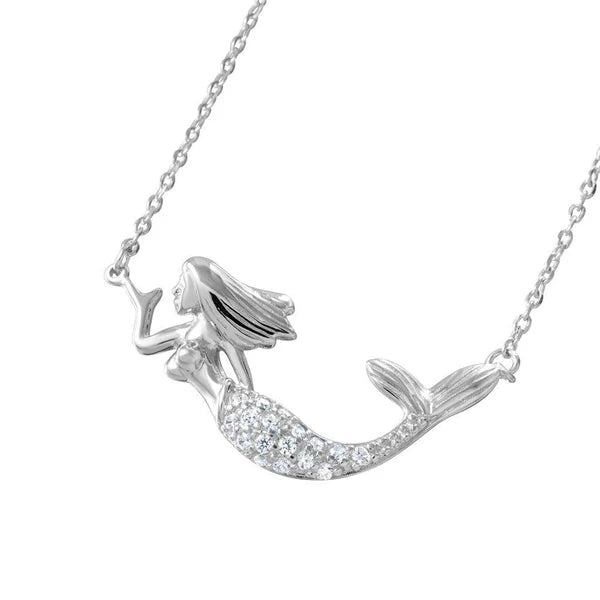 Silver 925 Rhodium Plated Clear CZ Mermaid Necklace