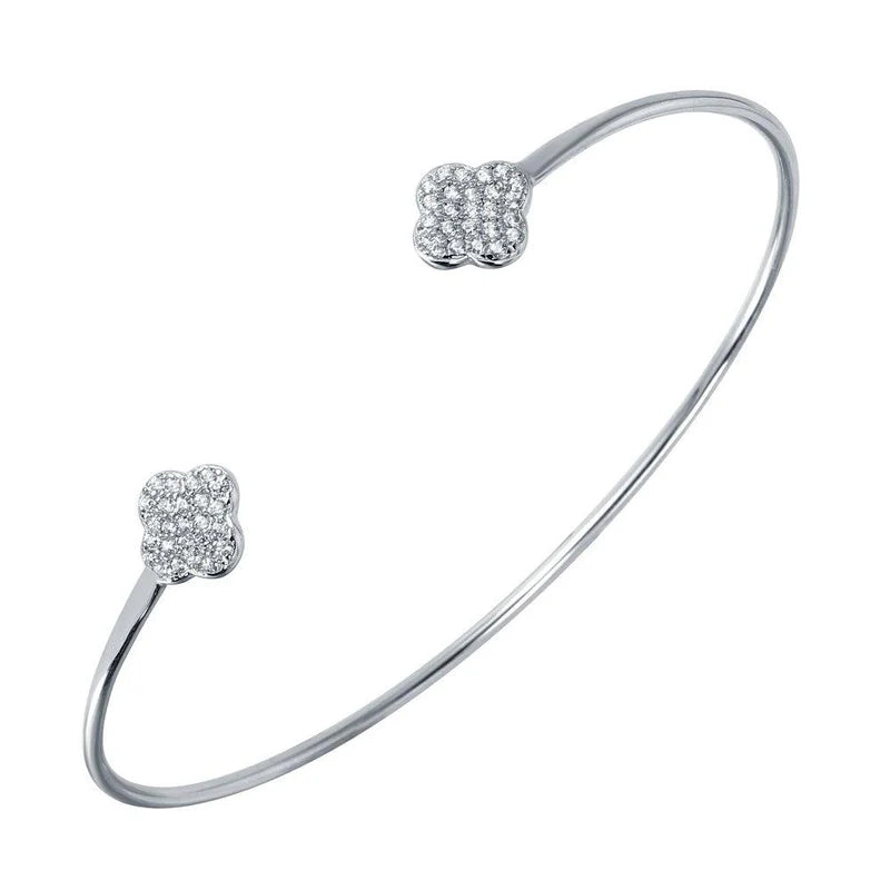 Silver 925 Rhodium Plated CZ Clover Shaped Cuff Bracelet