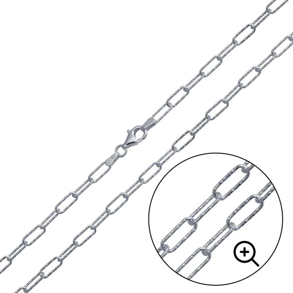 Silver 925 Rhodium Plated Diamond Cut Paperclip Link