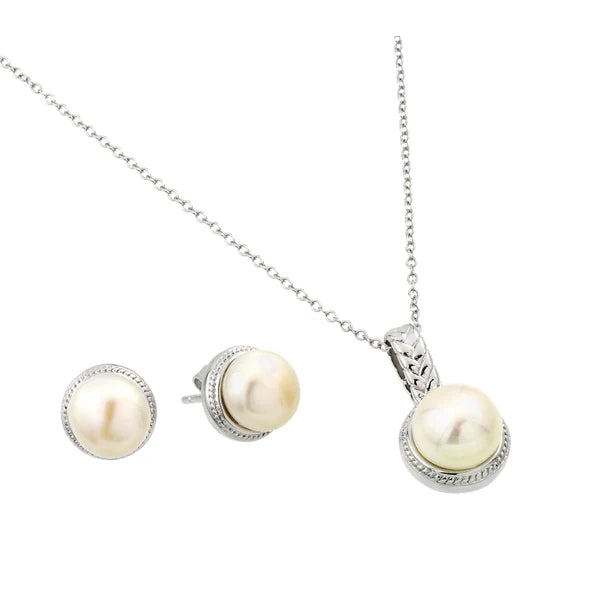 Silver 925 Rhodium Plated Fresh Water Pearl Rope Border Matching Set