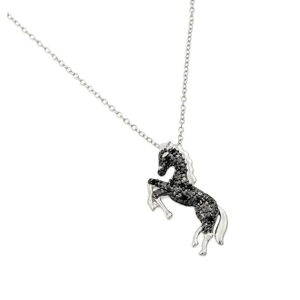 Silver 925 Rhodium Plated Horse Pendant with CZ