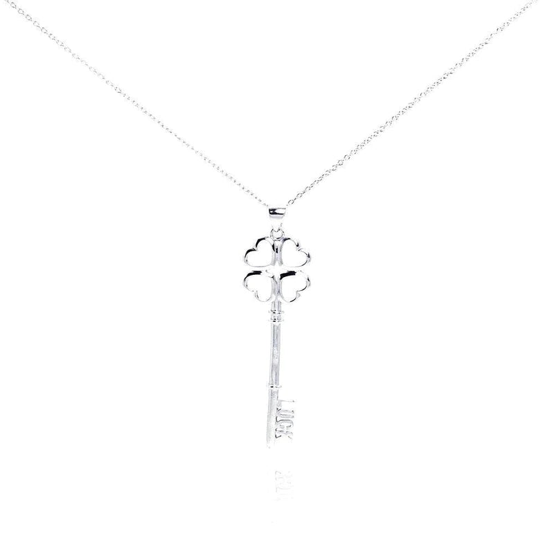 Silver 925 Rhodium Plated Luck Key Pendant Necklace