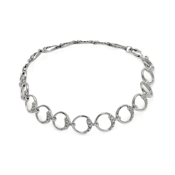 Silver 925 Rhodium Plated Open Circle Link Bracelet