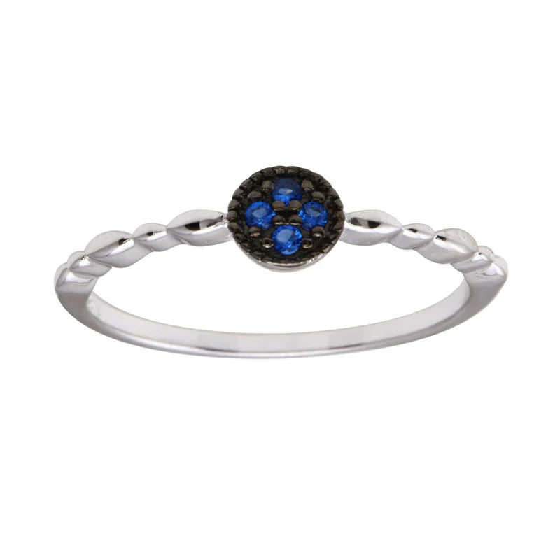 Silver 925 Rhodium Plated Round Shape 4 Blue CZ Ring