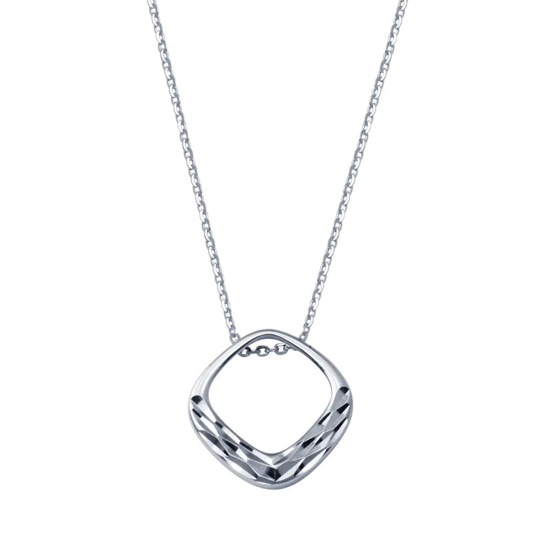 Silver 925 Rhodium Plated Square Diamond Cut Pendant Adjustable Necklace