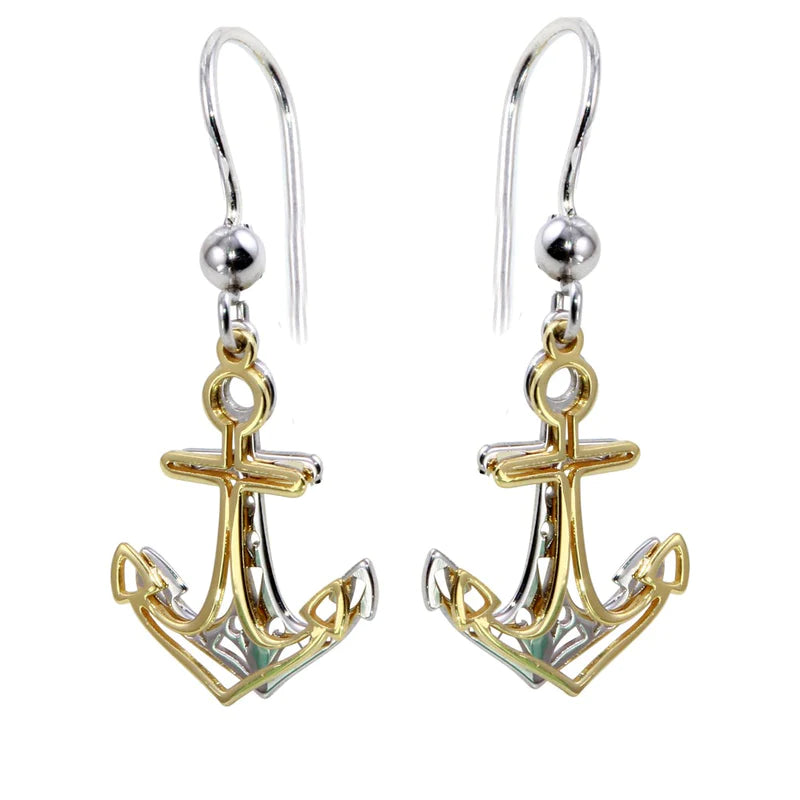 Silver 925 Two-Toned Flat Anchor Earrings