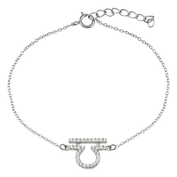 Sterling Silver 925 Rhodium Plated Libra CZ Adjustable Link Bracelet